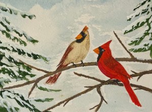 In the midst of the barrenness of winter our eyes catch splashes of brightness. Red Cardinals are a joy to behold. They move with purpose, navigating the fine balance of life and death amidst the grey winter clouds, naked trees and cold white snow.